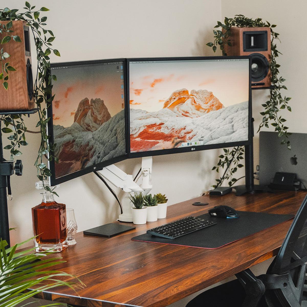 Dual monitors typically require 28-30 inches to maintain proper viewing distance for both screens. Our EFFYDESK customers often upgrade to larger or multiple monitors, which is why our desks accommodate this growth. The dual monitor mount works perfectly with our deeper desk surfaces.