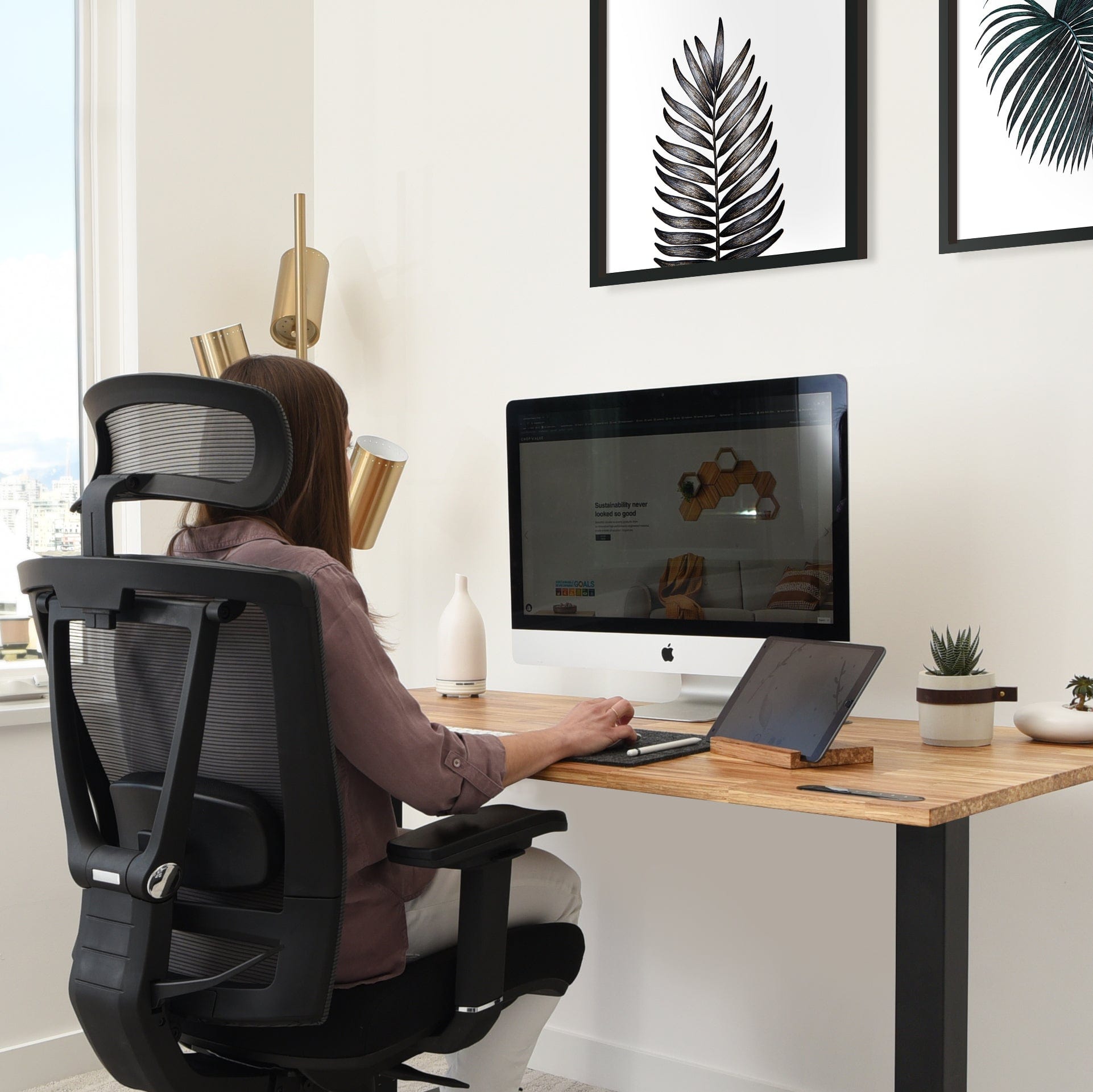 Since you’ll be spending roughly equal time sitting and standing, setting up the chair first is important because it sets your foundation for the rest of your ergonomic set up.