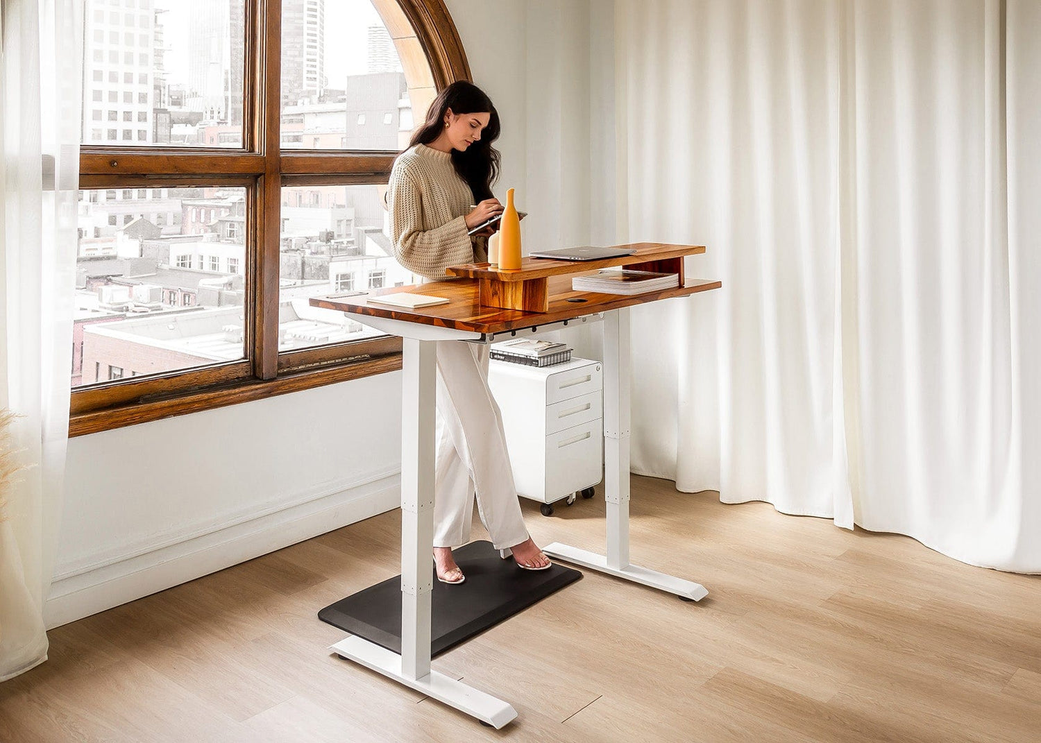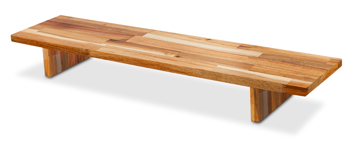 Our solid wood shelves pair with strong steel legs to hold up to 110 pounds of your office essentials. At 5 inches in height, your screens sit at a natural viewing level, helping you maintain good posture throughout your day. Choose from warm Acacia, rich Pheasantwood, or classic Walnut to match your style.