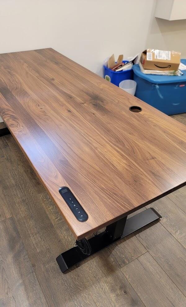 We recommend keeping your tabletop dry and using coasters for any drinks placed on or near your desk. With repeated exposure, puddles can impact the pristine surface of the solid wood, and a little care will help maintain its stunning look for years to come.