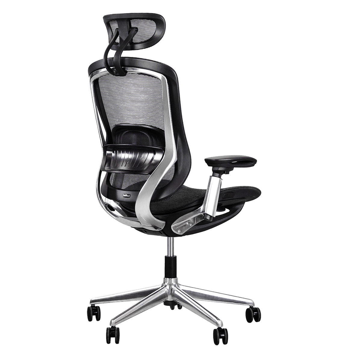 From the precision-engineered adjustable headrest to the smart weight-activated synchro tilt mechanism, every element is thoughtfully designed. The aluminum armrests adjust on three axes, while the height-adjustable lumbar module provides proper support.