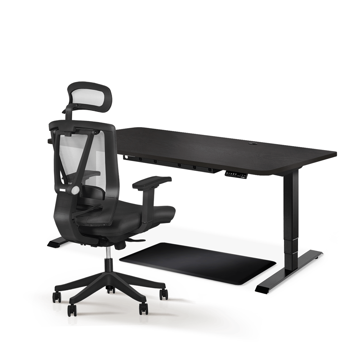 The ideal starter bundle to get your very own functional and ergonomic office setup. Includes our small Nimble Desk, Aery Chair, Standing Mat and our Cable Management Tray.